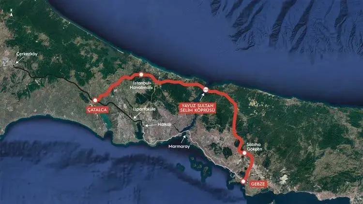 A 120 km railway line will be constructed over the Yavuz Sultan Selim Bridge, designed for both passenger and freight transport.